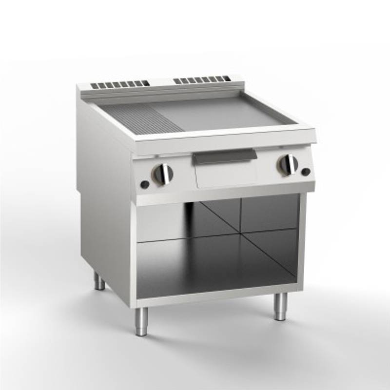 Fry top a gas 1/3 rigato 2/3 liscio. Due zone di cottura