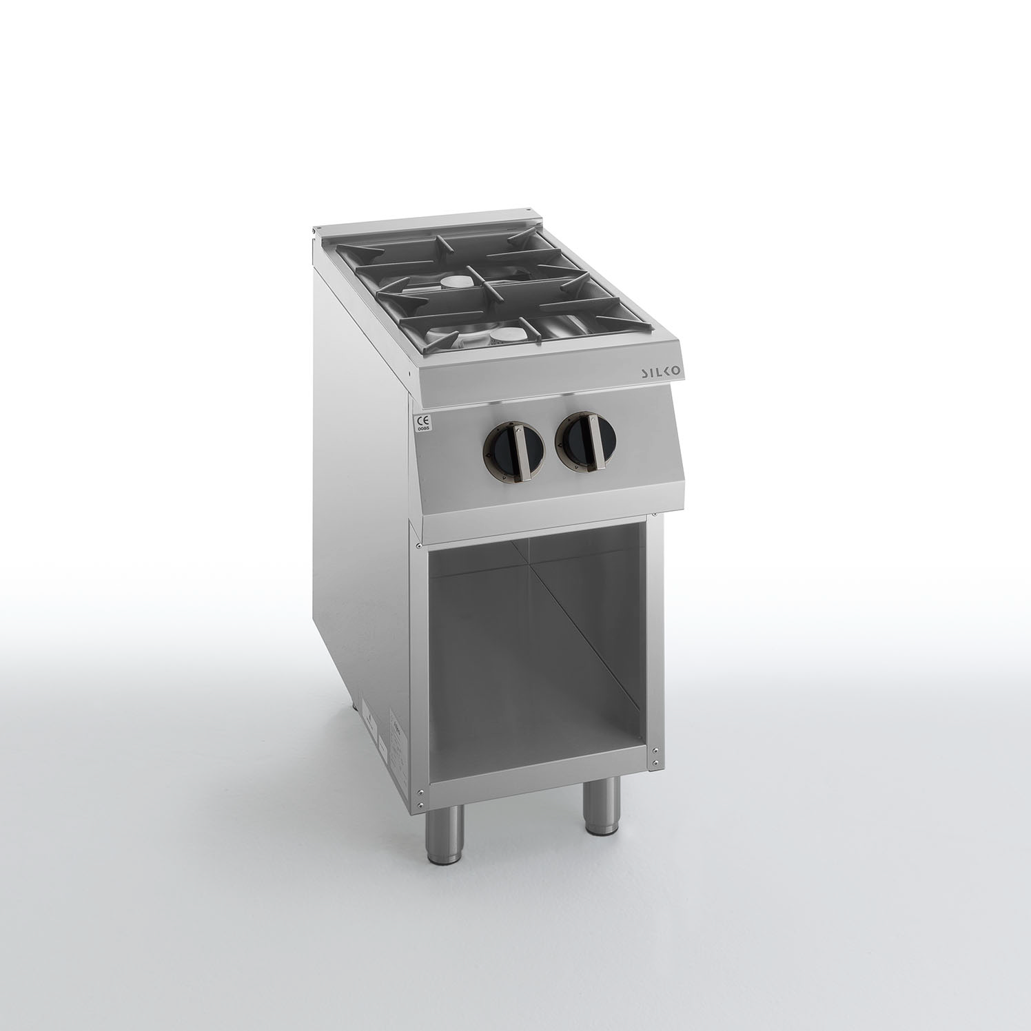 Bruciatori a fiamma stabilizzata a singola corona. Ogni bruciatore è dotato di un rubinetto a gas di sicurezza che permette di regolare la potenza dal massimo al minimo.