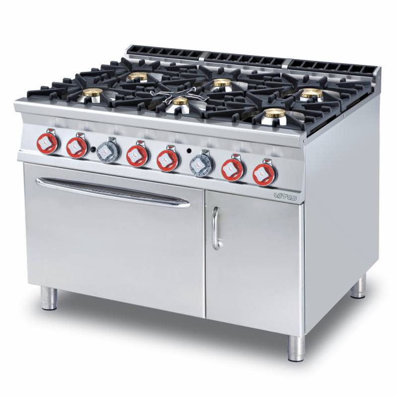 Cucina 6 fuochi con forno elettrico ventilato GN 1/1 + vano neutro con porta serie 900