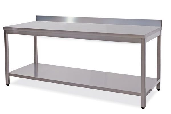 TAVOLO INOX APERTO CON ALZATINA E RIPIANO INFERIORE