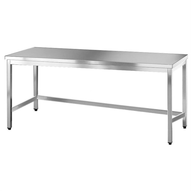 Tavolo in acciaio inox aperto con telaio inferiore 3 lati