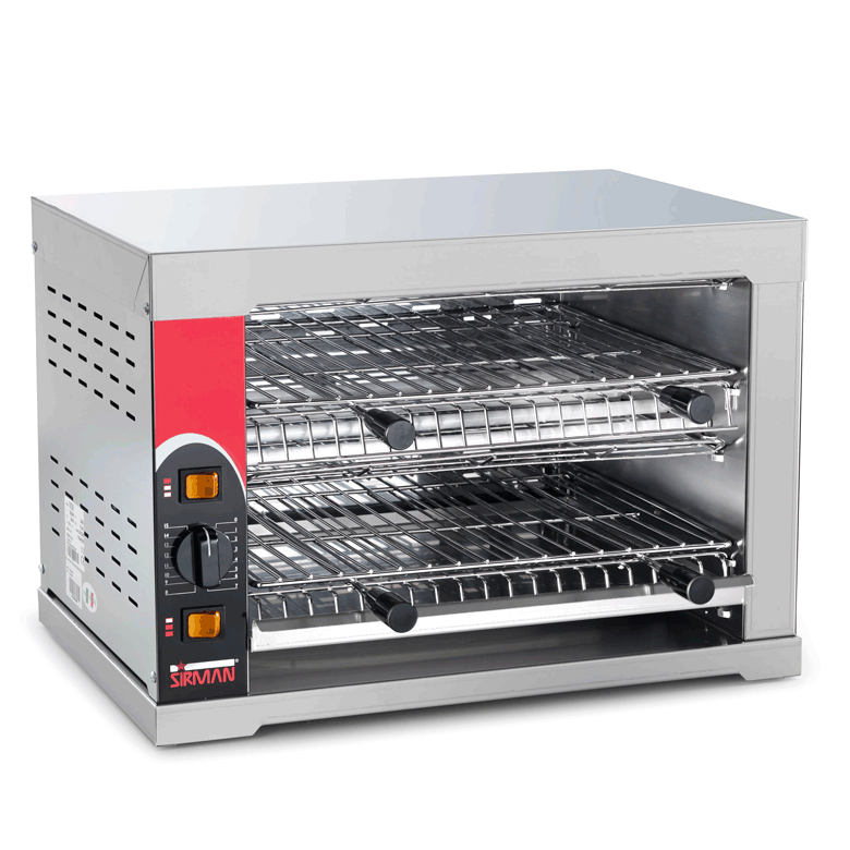 Ideale per riscaldare pizze, panini, cibi precotti; cuocere bruschette hamburger, wurstel, toast farciti e piadine,