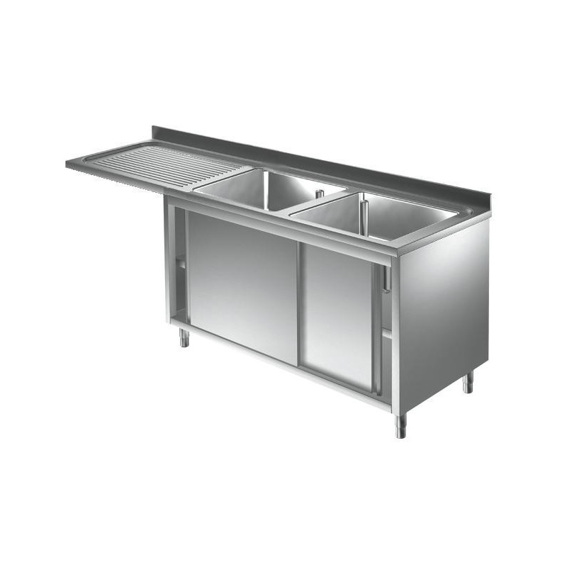 Lavello armadiato in acciaio inox con 2 vasche e sgocciolatoio, inserimento lavastoviglie