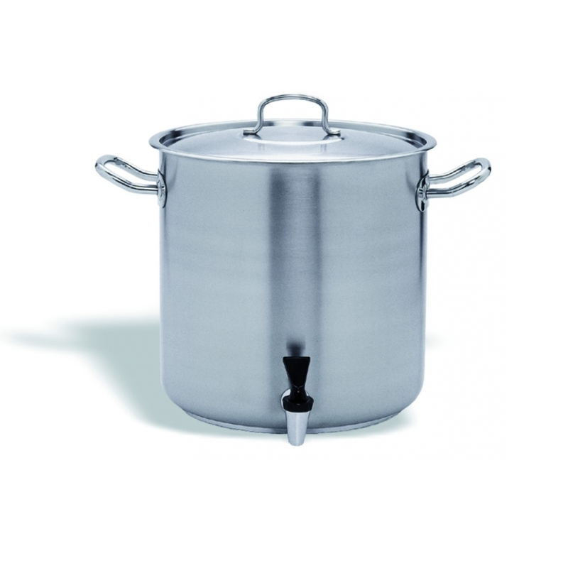 Pentola in acciaio inox con rubinetto e coperchio